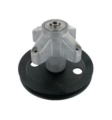 Palier de lame MTD avec poulie diamètre 116 mm, hauteur totale 185 mm, fixation de lame par étoile 6 pointes. Compatible tondeuses autoportées MTD.