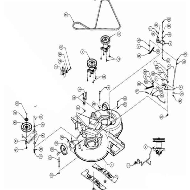 Ce plateau de coupe pour tracteur tondeuse de 105 cm s'adapte sur le tracteur tondeuse MTD Optima LN 165 H - 13IN71KN678 (2015) 105 cm. Plateau de coupe complet